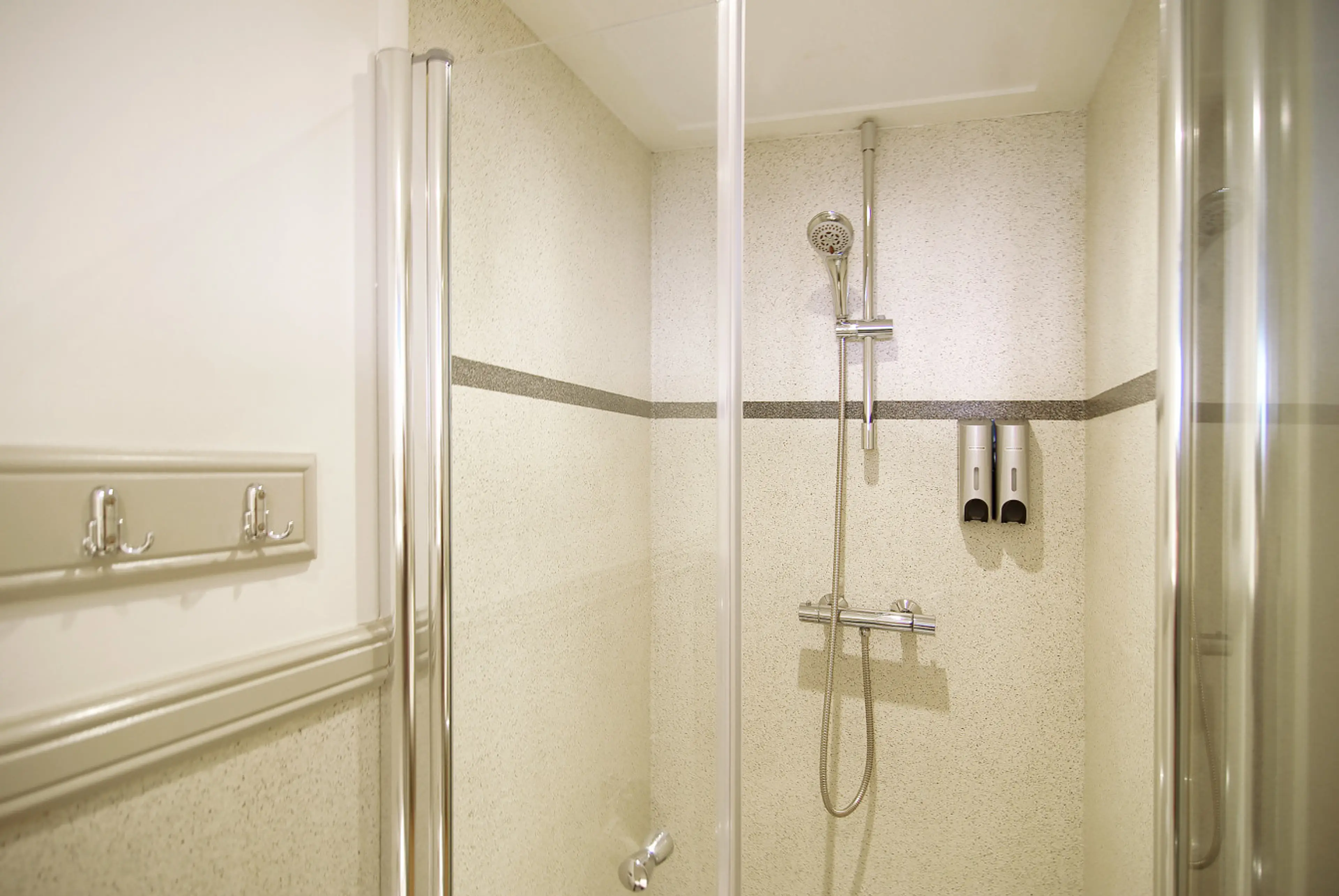 This charming twin room aboard the historic hotel ship Kapitein Anna features two separate beds that can be pushed together if desired. The room includes a private bathroom and is decorated in a warm, maritime style that reflects the character of the vessel. Located in Amsterdam North, right next t...