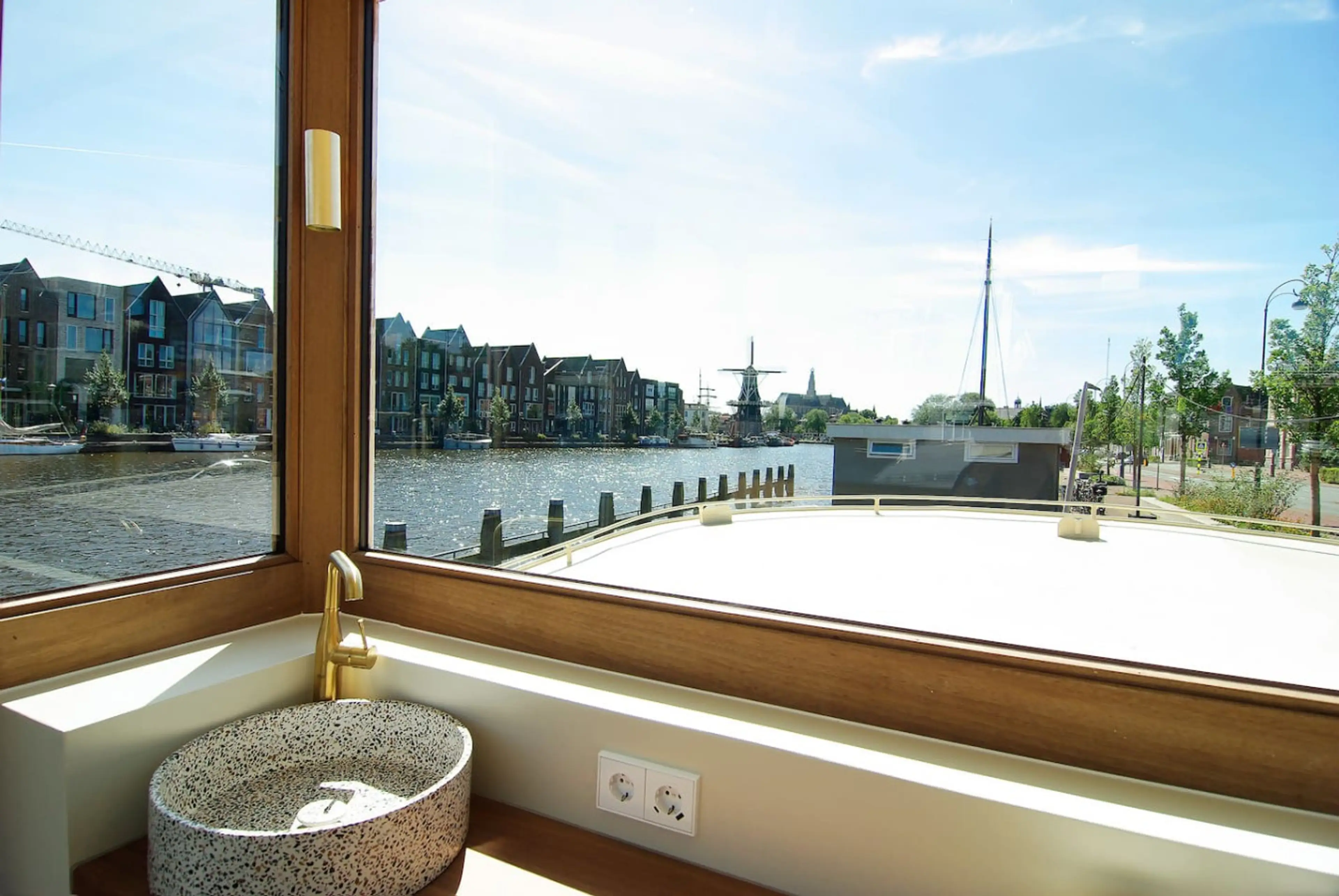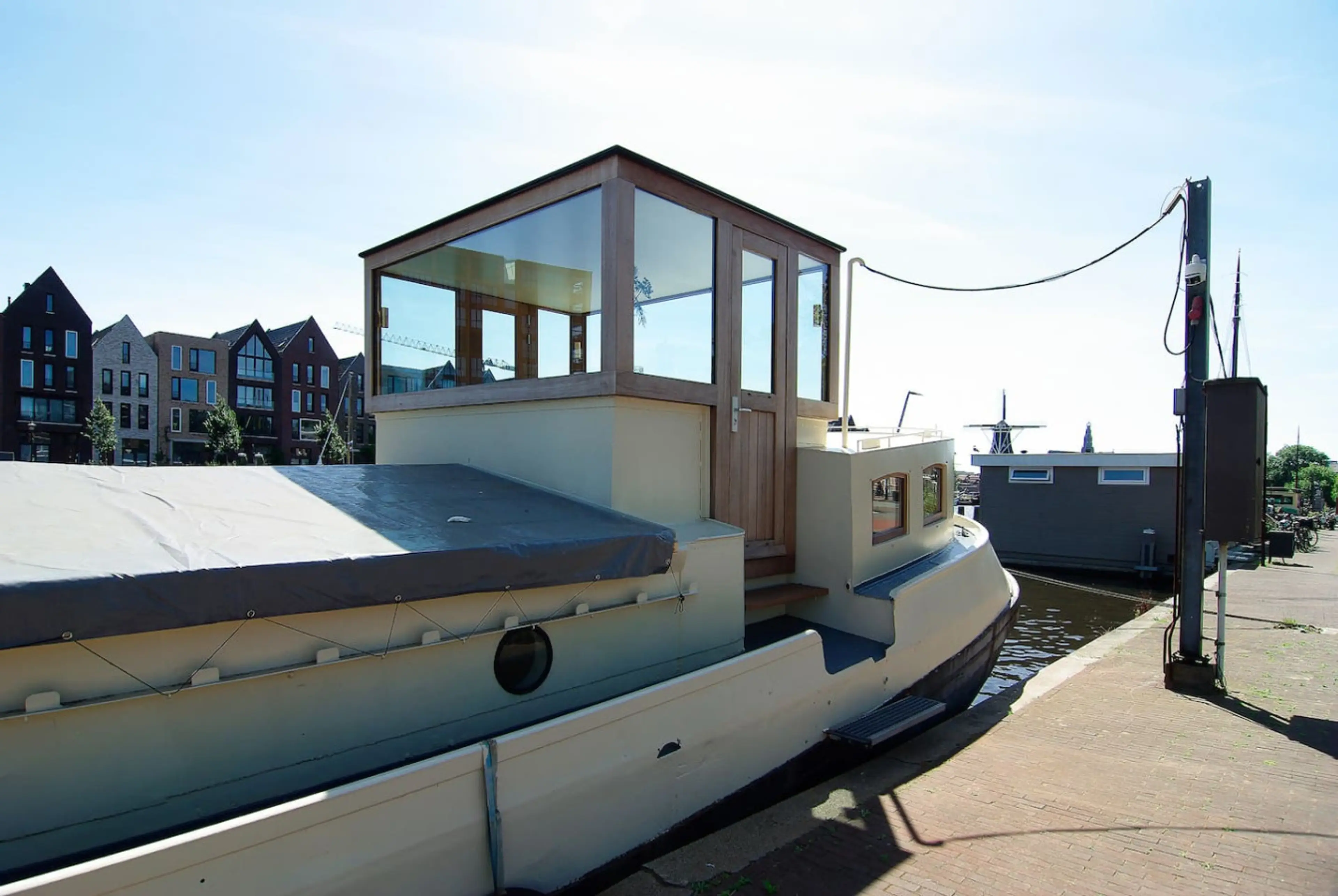 The Boutique Wheelhouse Haarlem offers a stylish and comfortable interior designed for relaxation. The cozy sleeping area features a high-quality bed with soft linens and clever storage. Large porthole windows provide natural light and a unique nautical atmosphere. A compact dining space and well-eq...